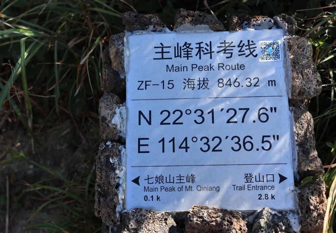 從公園登山口出發,走主峰科考線到達山頂。這條由北林苑設計的風景絕美的山海徑在遵循生態保護、旅游優先、集約利用等原則的前提下,根據現有海岸線及山體等自然資源,拓展綠道功能,創造性地融合了防火道、護林道、登山道、救援道、林業科研道、景觀道六道功能。