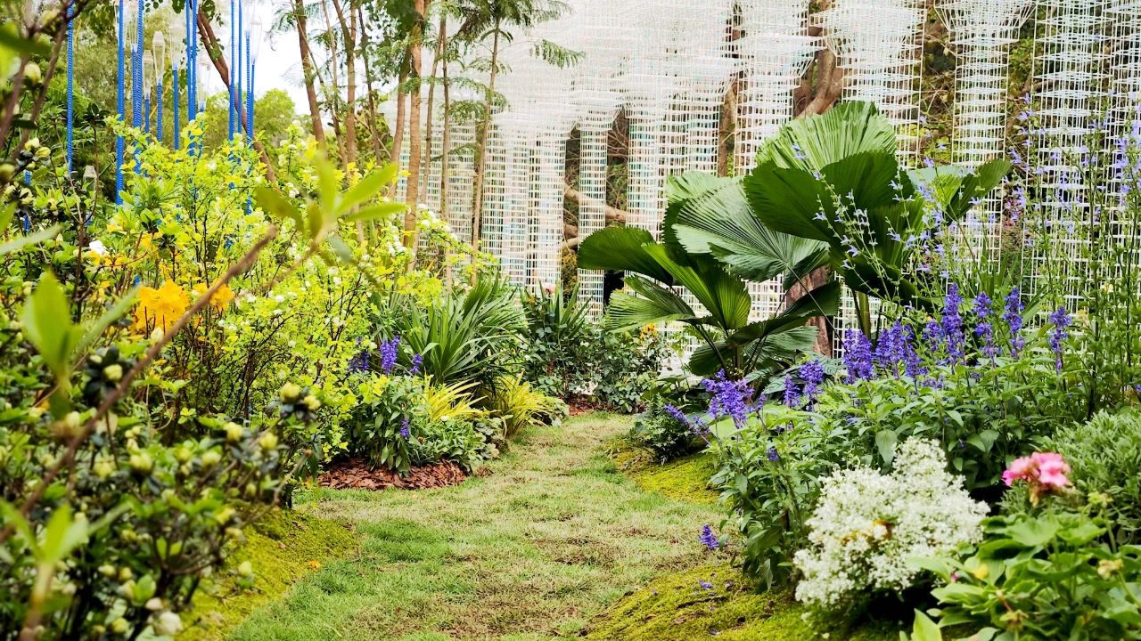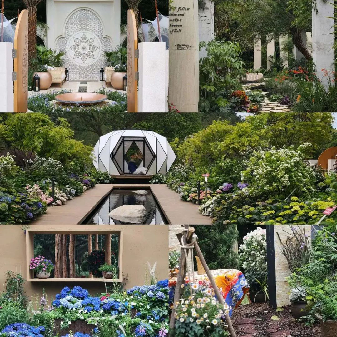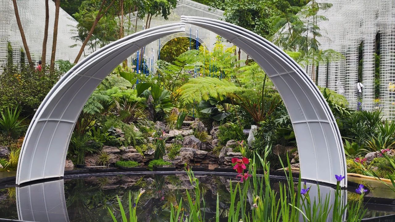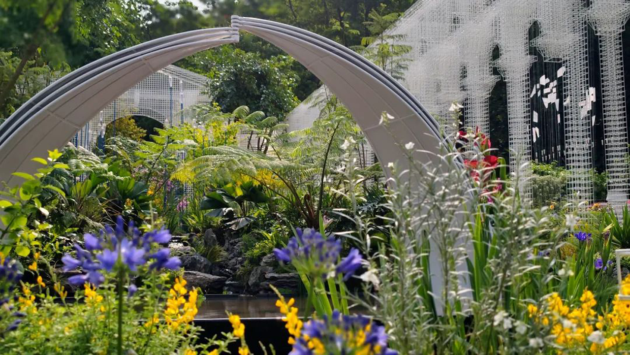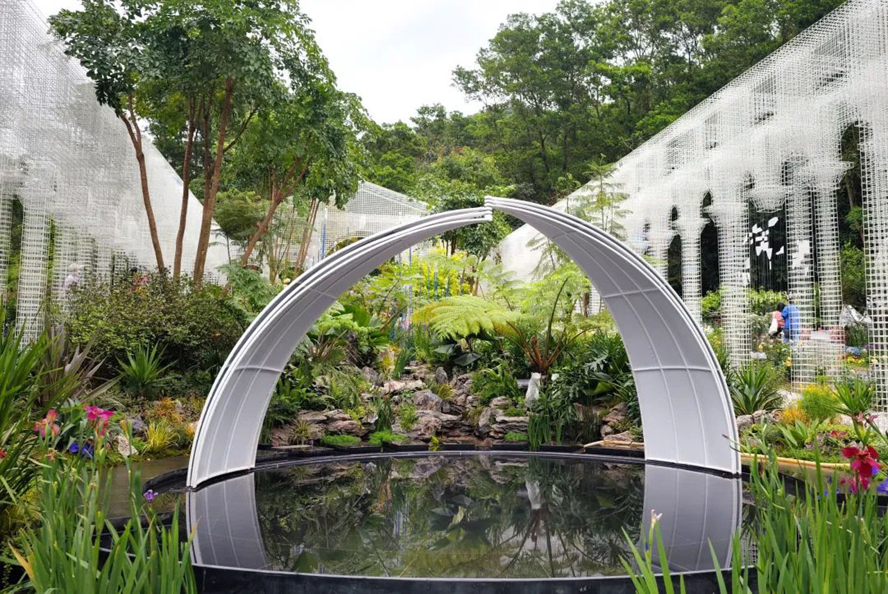 本次橫琴園以“筑夢(mèng)伊甸園”為題。從人類生存開始,「伊甸園」之夢(mèng)就一直存續(xù)不斷。想象中的伊甸園綠草鮮木、靜謐河流,萬物相生相融,永遠(yuǎn)呈現(xiàn)出一種輕柔朦朧的美感。花園以超現(xiàn)實(shí)的造園手法,筑造一場(chǎng)“回歸伊甸園的綠色夢(mèng)”,向人們展示亞當(dāng)與夏娃離開數(shù)千年后的「伊甸園」模樣。