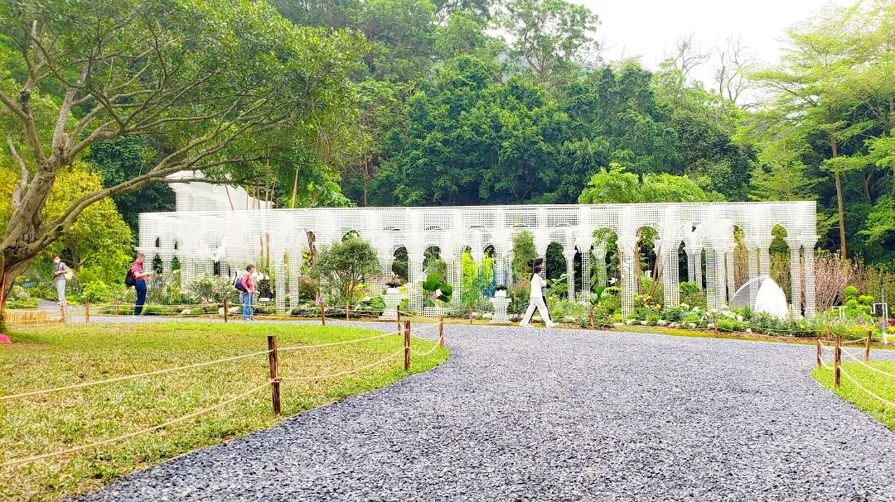 展園設(shè)計(jì)不僅希望可以映射出橫琴的城市特質(zhì),傳遞正能量的價(jià)值觀,同時(shí)也呈現(xiàn)超現(xiàn)實(shí)的園藝表達(dá)方式。展位位于場(chǎng)地中央,被各城市園包圍,于是設(shè)計(jì)團(tuán)隊(duì)提出花園應(yīng)該是純粹且有一定空間體量的基本思路。再結(jié)合伊甸園主題和現(xiàn)狀,一個(gè)長約20米、寬11米的“宮苑”孕育而生。